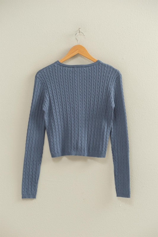 Lightweight Cable Knit Button-Up Cardigan – Cream & Blue