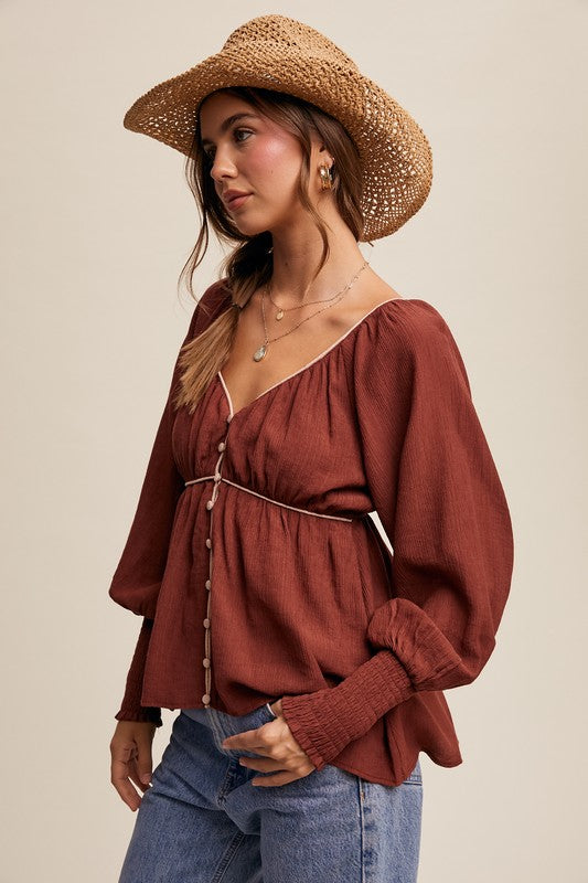 Brick Long Sleeve Blouse