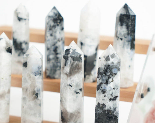 Rainbow Moonstone Crystal Obelisk Tower Point Generator: 8-10cm