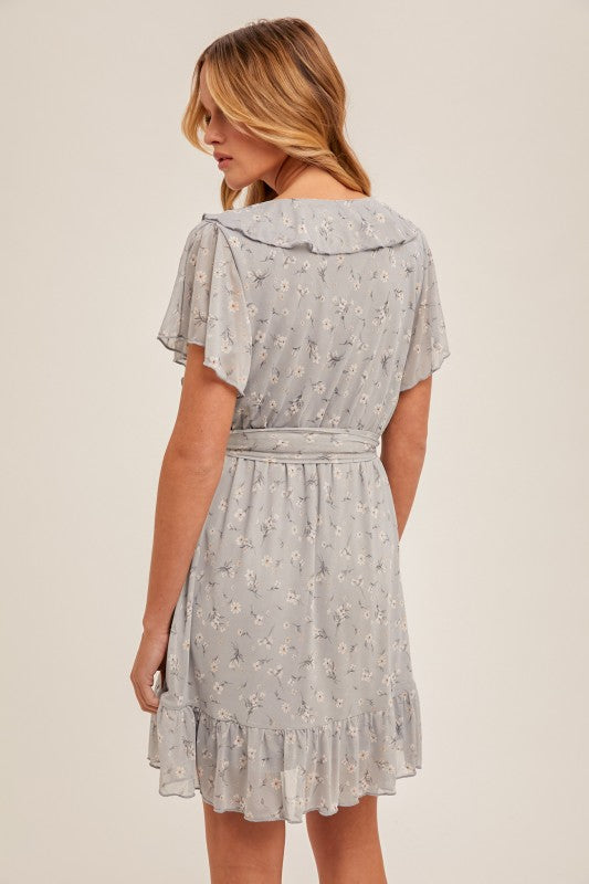 Blue Ruffle Wrap Floral Dress
