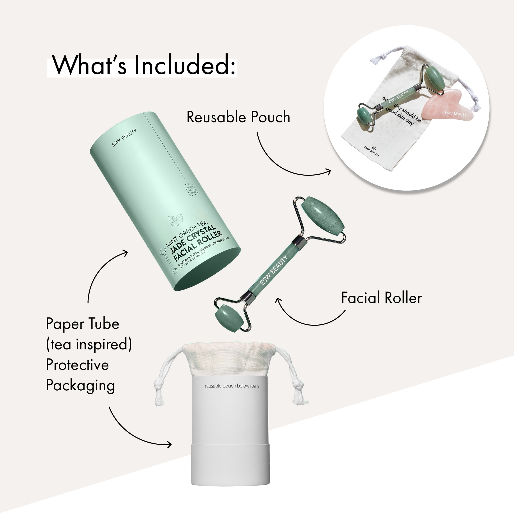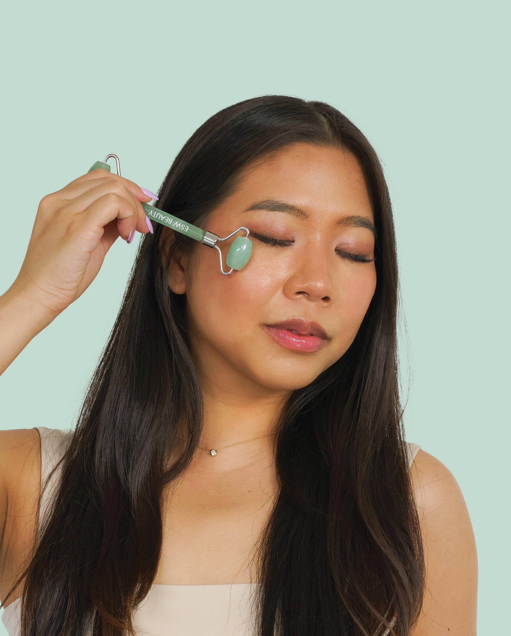 Mint Green Tea Jade Crystal Facial Roller