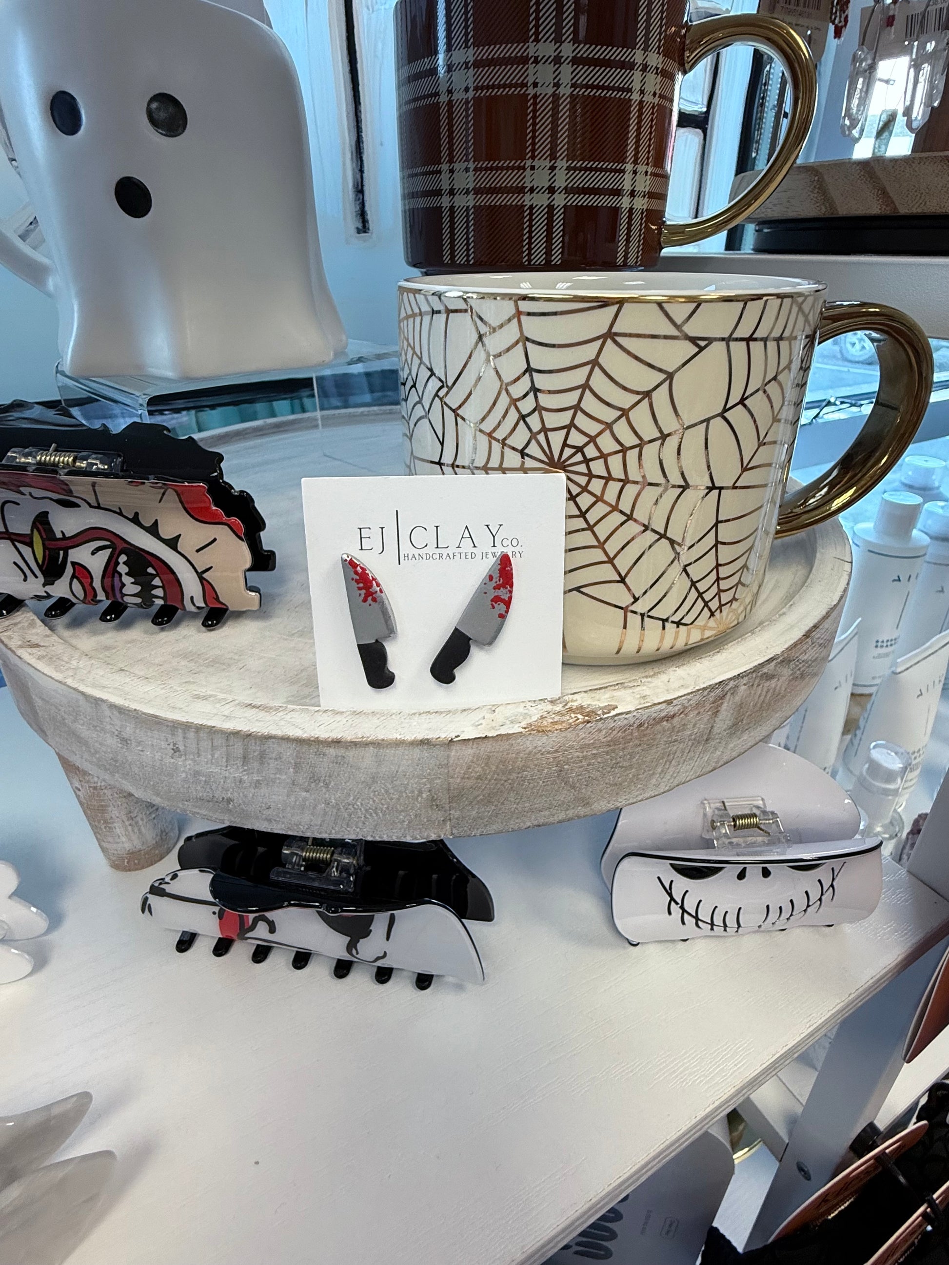 Add the perfect spooky touch to your outfit with these handcrafted clay earrings by EJ Clay Co. 🎃👻 Each pair is lightweight, unique, and made for Halloween lovers who want a bold statement piece without the heaviness of traditional earrings.